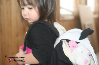 Gracie loves to be organized and have her place for all "her stuff." When the bag arrived, the first test was to find out if it would adequately hold her favorite item of all. Her little stuff dog never leaves her side so she wanted to test out her EcoZoo Panda bag to see if it fit and how he would look.